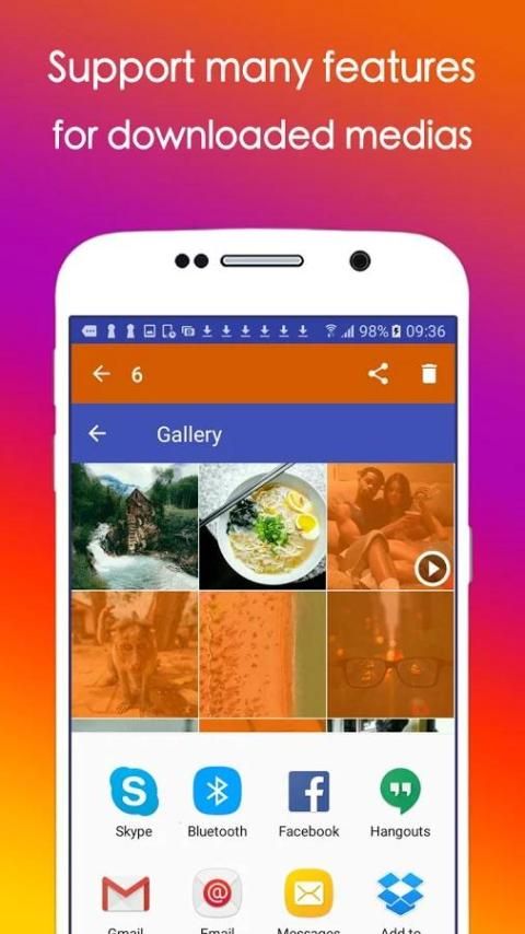 हमारे ऐप्लिकेशन से आप अब और स्क्रीनशॉट की जरूरत नहीं है, यह Inst medias आप अपने Instagram अनुयायियों पर पाया हिस्सा या किसी दूत, Viber, WhatsApp, फेसबुक, Pinterest, या किसी प्रसिद्ध के माध्यम से अपने दोस्तों के लिए उन्हें सीधे भेजने के लिए बस बहुत आसान है सामाजिक नेटवर्क आप की तरह! अपने मित्रों को एक बात याद आती है मत!
