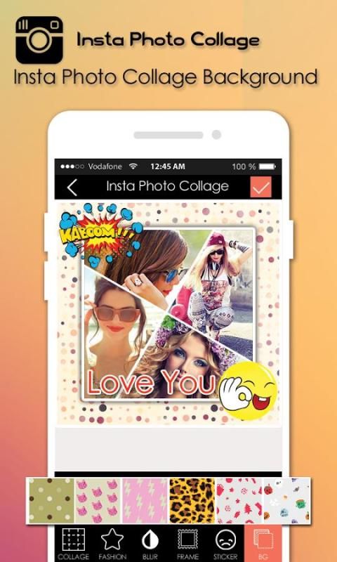 इंस्टा स्क्वायर आकार कोलाज़ निर्माता पाठ समारोह भी, तस्वीर पिक प्रदान कलंक पृष्ठभूमि और रंज प्रभाव के साथ आप फोटो पर sanp पाठ जोड़ें।