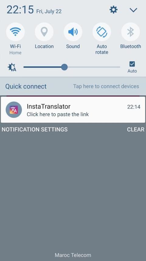 * सूचना पट्टी पर InstaTranslator आइकन पर क्लिक करें 2- या app खुला और यदि आप "शेयर" है "पेस्ट" के बजाय "कॉपी शेयर यूआरएल" "शेयर" पर क्लिक करने के बाद एप्लिकेशन सूची से InstaTranslator चुनें क्लिक करें।