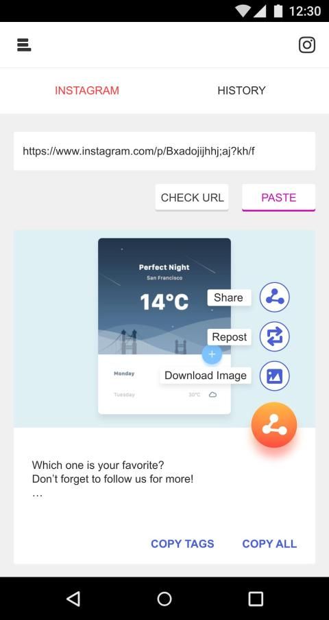4, Repost-Only one Click to Copy Tags or Contents from Instagram and Repost