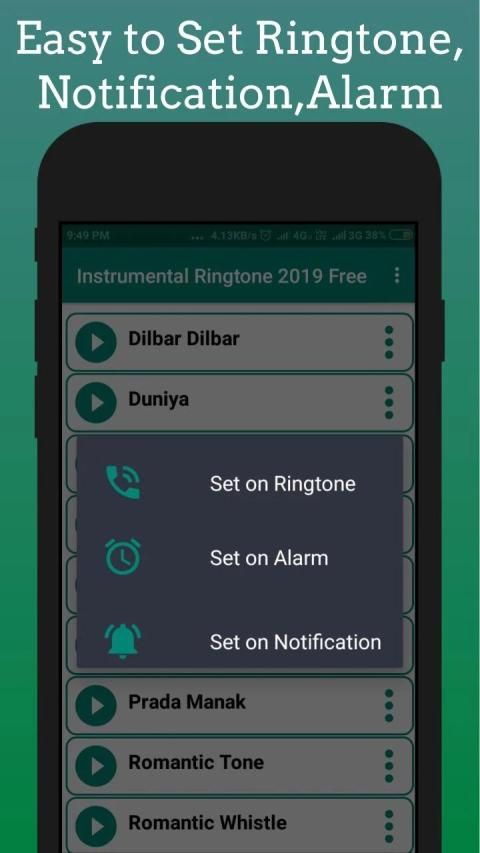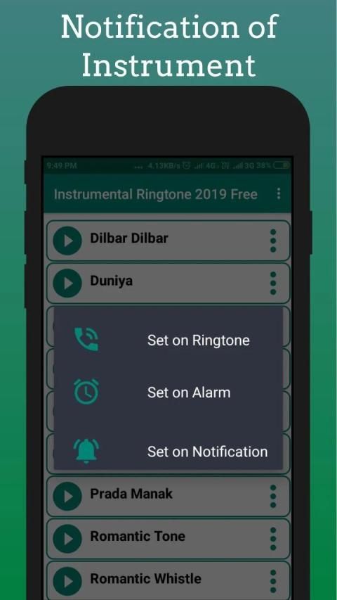 Now you can set Ringtone, Alarm , Notification of instrumental music with categories like Duniya,Bom diggy diggy,romantic etc songs.