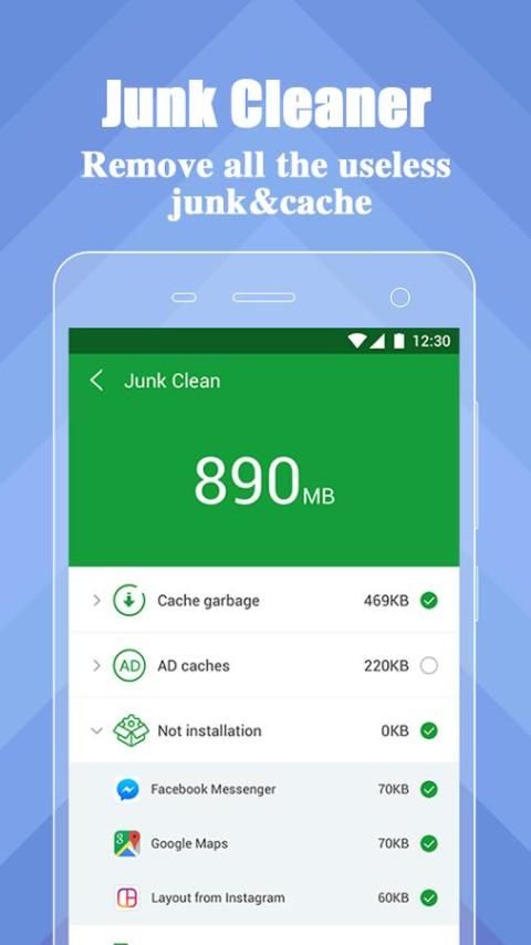 साफ पास शेष सभी फ़ाइलें, कैश और कई GB भंडारण (रोम) सही सटीकता के साथ अंतरिक्ष बहाल। लेकिन अपने संगीत, चैटिंग, चित्रों, दस्तावेज़ों और अन्य फ़ाइलों को हमारे साथ सुरक्षित हैं।