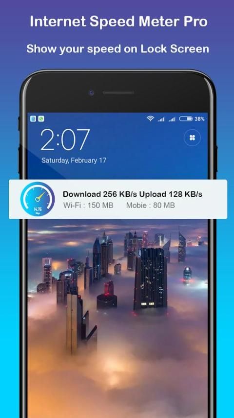इंटरनेट गति परीक्षण भी नेटवर्क गति परीक्षण परीक्षण है - स्थिति पट्टी में वास्तविक समय नेटवर्क की गति की जांच; डाटा मीटर -Monitor और इंटरनेट डेटा के उपयोग का रिकॉर्ड रखने के।