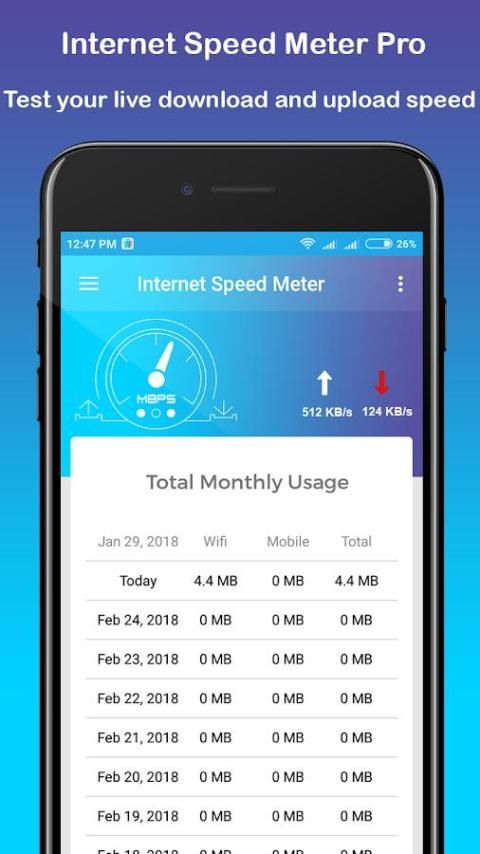 इंटरनेट स्पीड मीटर एक इंटरनेट स्पीड और अपने स्मार्टफोन के लिए उपयोग की निगरानी है।