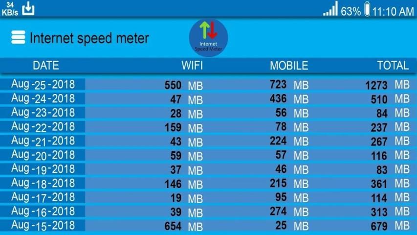 To Internet Speed Meter The Use Of Internet And Wi-Fi Daily-used Data Report And Show Date In Right-side