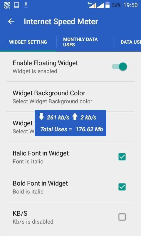 4. कुल डेटा के साथ महीने में उपयोग करता है इंटरनेट की गति को ट्रैक करने के लिए डिक्शनरी विकल्प नहीं है।