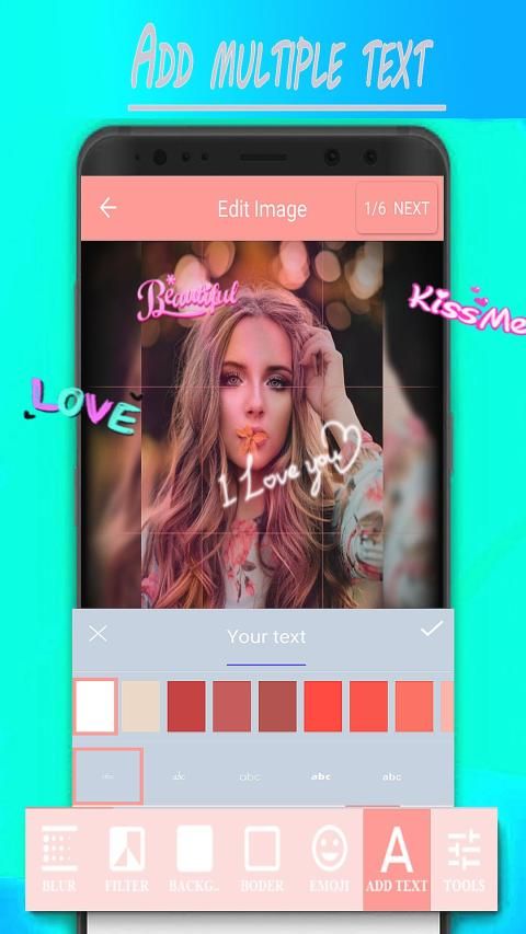 - पाठ स्टाइलिश फ़ॉन्ट्स, रंग, छाया प्रभाव और भी बहुत कुछ के साथ अपने संपादित करें।
