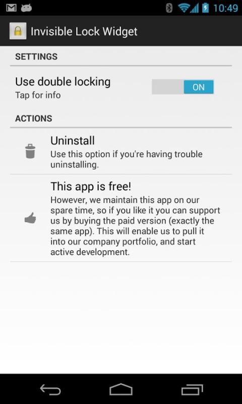 Enjoy the most popular apps here! 10,000+ users downloaded Invisible Lock Widget latest version on 9Apps for free every week! You get various free apps from the store. This hot app was released on 2013-04-17. If you want it so go head and download it and enjoy your app. यहाँ आपको सबसे बढ़िया फ्री एंड्राइड एप्स मिलेंगी. 10,000+ युसर्ज़ ने हर हफ्ते मुफ्त में 9apps पर Invisible Lock Widget नया वर्ज़न डाउनलोड किया.ये आपको दूसरे खिलाडियों के बारे में जानकारी भी देगी. यह हॉट मोबाइल ऐप्स 2013-04-17 पर जारी किया गया था. इसके अलावा आप दूसरी लोकप्रिय एप्स भी ले सकते हैं!