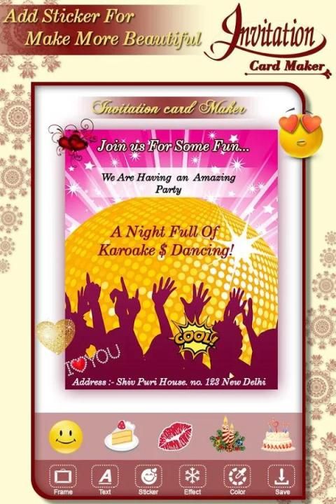► विभिन्न स्टिकर जो जबकि निमंत्रण कार्ड बनाने में मदद करता है प्रदान की।