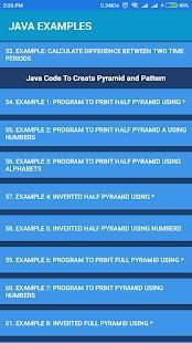 To rock java programming you must develop your skill with example or programs. Java Examples App app helps you to refer a great collection java programs on the go and Helps you improve Logical thinking of various problems related to Programming. Java Examples Application give source code and output for various Java Programs or examples.