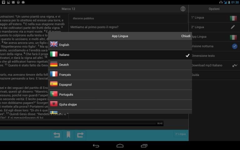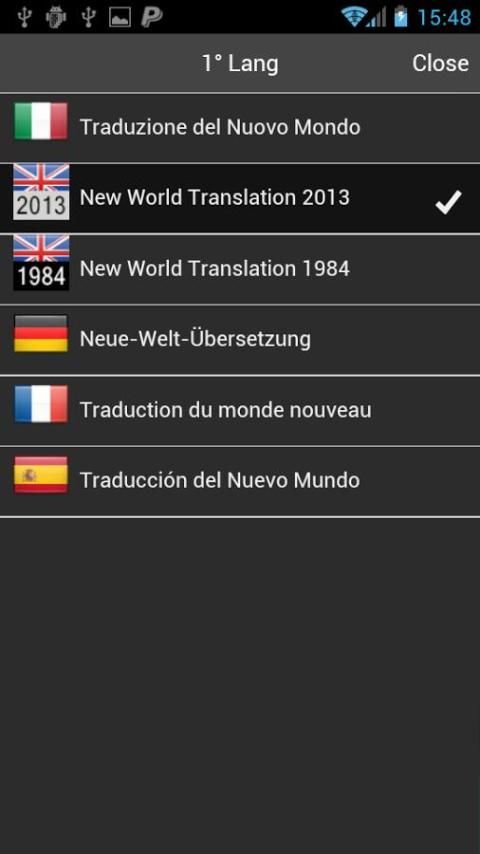 दो अलग अलग भाषाओं में बाइबल पढ़ने के लिए, दूसरी भाषा का चयन करें.