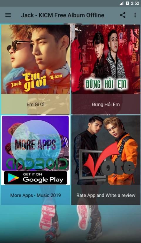 Jack - KICM Free Album Offline là ứng dụng nghe nhạc online hoàn toàn MIỄN PHÍ. Mục đích chúng tôi tạo ra Ứng dụng Jack - KICM Free Album Offline này là đem đến cho người dùng những tính năng tuyệt vời nhất và dễ sử dụng nhất. Ứng dụng của chúng tôi tổng hợp online các bài hát đang thịnh hành nhất, ... để bạn có thể tìm kiếm các bài hát bạn thích nghe