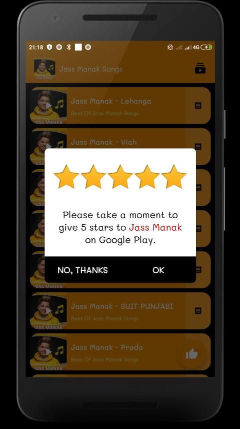 Let us know of what you think about our App in the reviews and what could be improved for your Top 10 Jass Manak Songs Application and If you like my app, please rate us 5 stars and leave a nice comment, thank you so much