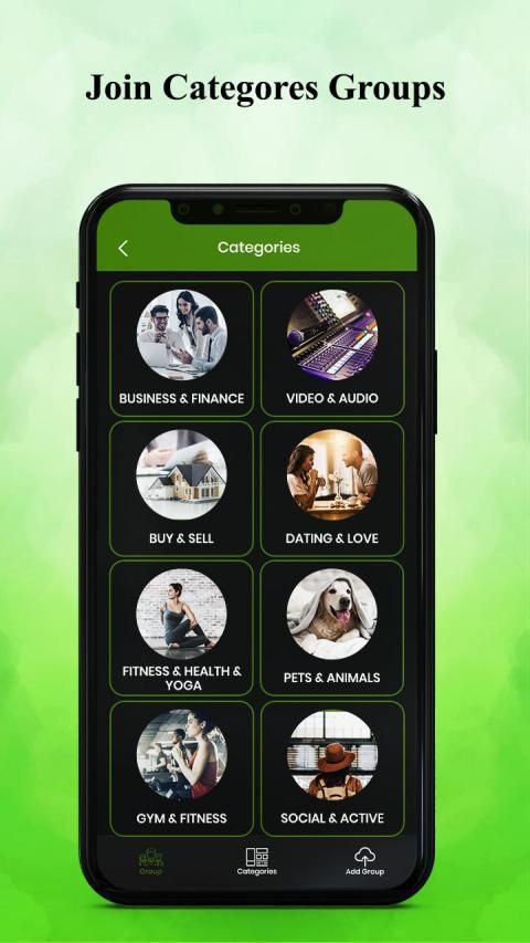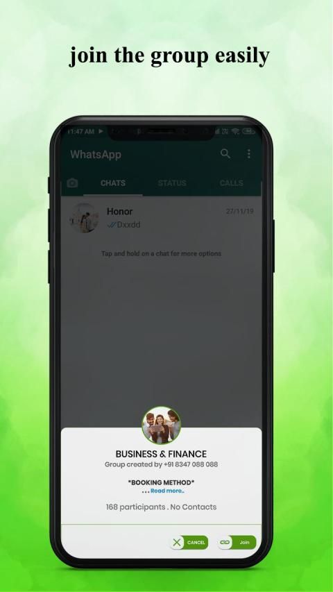 smart device and tap on the start button, get a list of all active groups and with a single tap join it. App also allows users to personalize your choice Group with sharing a link. Expand your business and many more through the simple groups with Active your group and add Group on the social link.