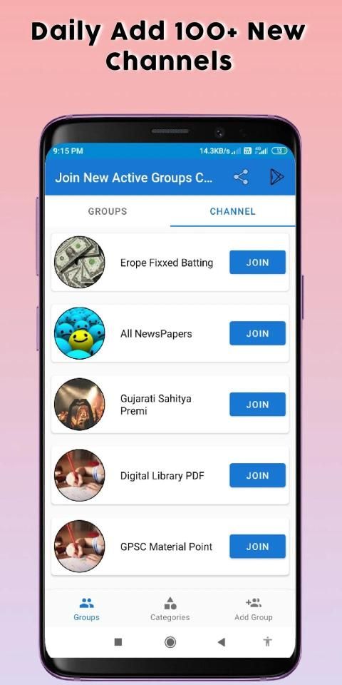 Now Share And Join New Active Groups And Channels in One App. You Can Join Unlimited Groups And Channels from 25+ Different Categories. If You Having Any Groups Or Channels On Social Media Apps, Then You Can Also Share Your Links In This App To Get New Member For Free.
