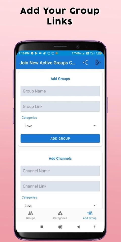 * Add Your Channel and Group Links in This App