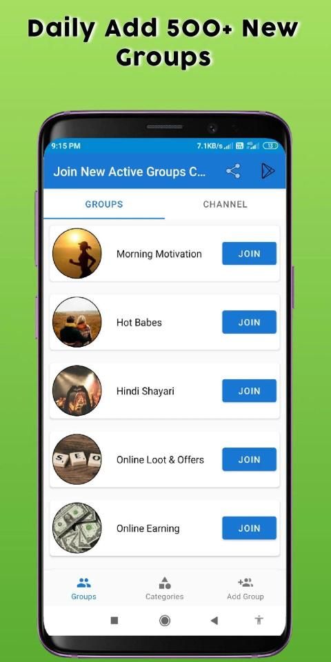 I would like to recommend you an application with large number of downloaders. 20,000+ users downloaded Join New Active Groups Channels latest version on 9Apps for free every week! The app has also been given a bit of a visual makeover, too This hot app was released on 2019-10-21. You can free download it from 9Apps.