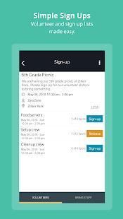 हमारा साइन-अप मॉड्यूल लचीला और प्रयोग करने में आसान है। एक साइन-अप घटना है कि समयावधि, लाने के लिए मदों की एक सूची, को भरने के लिए स्वयंसेवक स्पॉट की एक सूची, या साइन-अप के सभी तीन प्रकार के एक ही कार्यक्रम में शामिल कर सकते हैं बनाएँ। साइन अप हमारे वेब क्लाइंट पर बनाई गई हैं, लेकिन आप हमारे मोबाइल एप्लिकेशन पर सूचना मिल सकती है जब एक साइन-अप आप के लिए लक्षित है, और साइन-अप हमारे मोबाइल एप्लिकेशन से। आपके मोबाइल ऐप्लिकेशन पर साइन-अप की घटनाओं के अपने कार्यक्रम देखें।