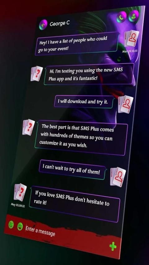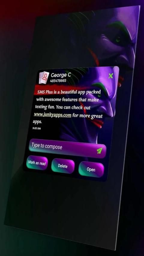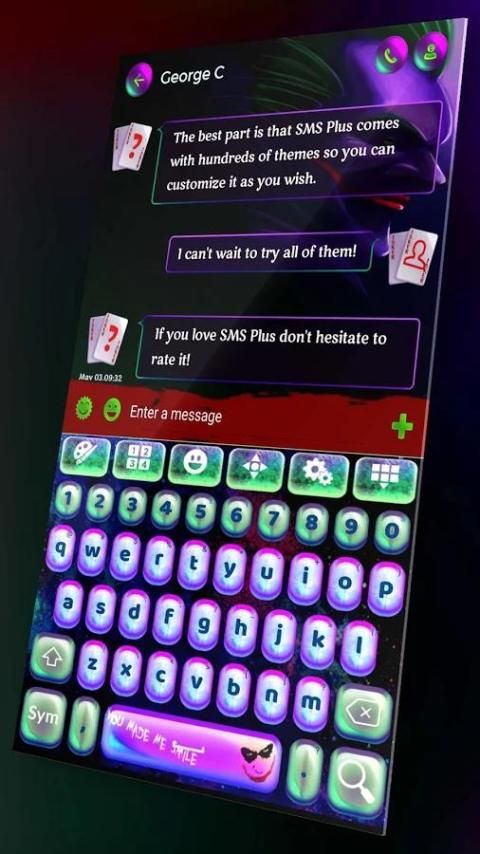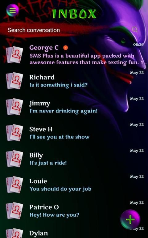 पहले से कहीं ज्यादा अपने उबाऊ SMS एप्लिकेशन सुंदर बनाने के लिए और इस नए विषय के साथ अनुकूलित। आदर्श से कम कुछ भी करने के लिए समझौता और अद्भुत जोकर 4k HD न करें।