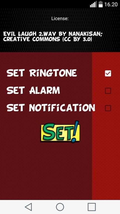 आप अपने एंड्रॉयड फोन या टैबलेट पर अपने वर्तमान रिंगटोन के साथ ऊब रहे हैं? क्या होगा अगर वहाँ इस समस्या के लिए एक समाधान है? हम पहले से ही खुशी की हँसी सुन सकते हैं, और आप एंड्रॉयड एप्लिकेशन के लिए हमारा मुफ्त रिंगटोन के साथ ही करने में सक्षम हो जाएगा! आप किस का इंतजार कर रहे हैं? सबसे लोकप्रिय रिंगटोन जोकर लगता है और रिंगटोन स्थापित करके प्रभार से मुक्त हो जाओ। आप अजीब लगता है जैसे है और एक चालबाज या जोकर के रूप में कार्य करना चाहते हैं, तो आप अपने फोन के लिए हमारे सुपर अजीब रिंगटोन होना चाहिए। वहाँ कई रिंगटोन मुक्त क्षुधा हैं, लेकिन उनमें से कोई भी पागल हंसी जोकर लगता है और रिंगटोन की तरह लगता है। तो अगर वहाँ से बाहर एक जोकर, जो लोगों को मुस्कान बनाने के लिए पसंद करती है, तो आप एंड्रॉयड फोन के लिए इन रिंगटोन मिलनी चाहिए।
