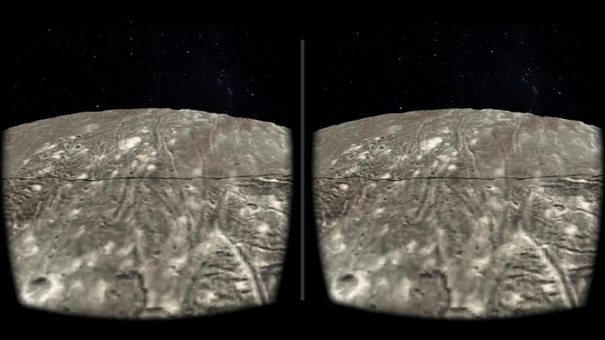 यह गूगल कार्डबोर्ड एप्लिकेशन वी.आर. में उनके सतहों की खोज, आप ग्रह बृहस्पति और उसके चन्द्रमाओं की यात्रा के लिए अनुमति देता है। एक लैंडिंग साइट का चयन करें और फिर एक बार आप सतह तक पहुंच क्या आप छोड़ दिया सिर झुकने और उड़ान की दिशा बदलने के लिए आप सही से तलाश कर सकते हैं। ऊपर और नीचे देख रहे हैं अपने ऊंचाई बदल जाएगा और सेटिंग्स में आप आप आगे नेविगेट करने में मदद करने के लिए एक सिर अप डिस्प्ले सक्षम कर सकते हैं।