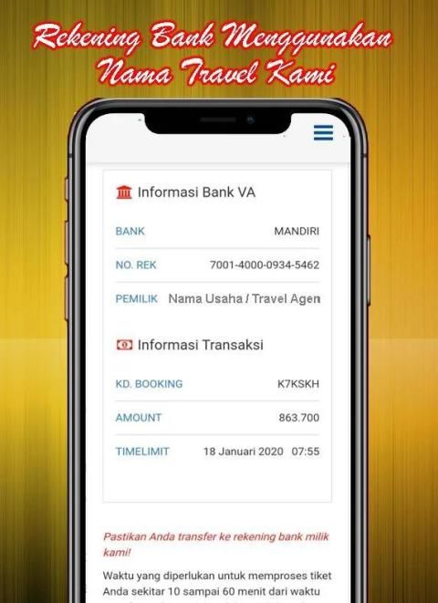 - konfirmasi pembayaran menggunakan rekening virtual akun atas nama travel kami