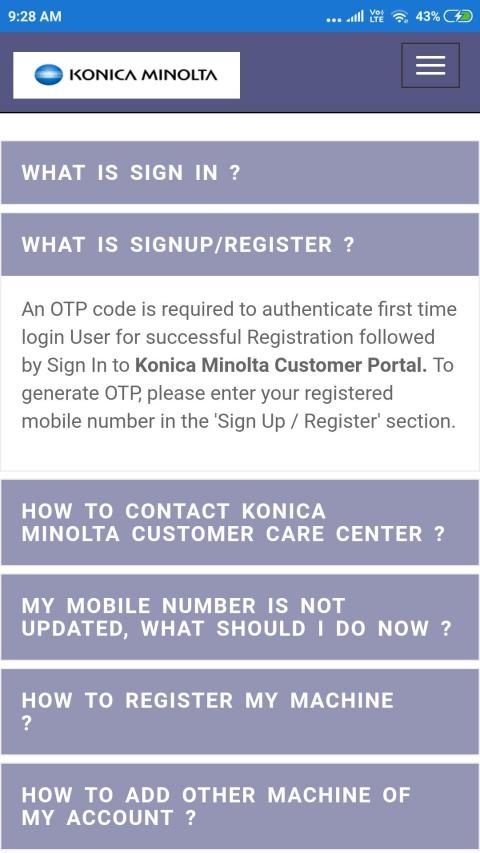 Konica Minolta Customer Service Portal – App to register Online Service request by Customer