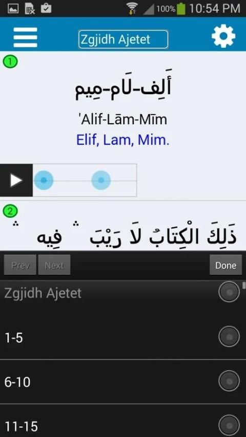 Vetëm klikoni një sure dhe nën ajetin e parë klikoni buttonin Play dhe do të fillojë këndimi i të gjitha ajeteve njera pas tjetrës.