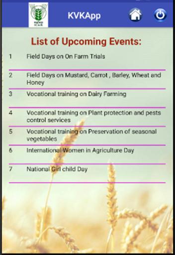 • Get details of events like field day, kisan mela, method demonstration etc. already organized by KVK