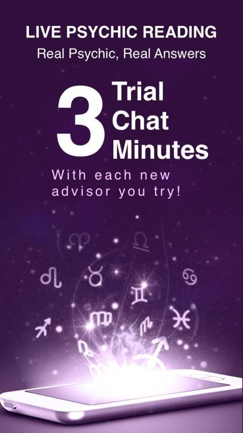 Get a 3 Minute trial for every chat with each new, genuine, and real psychic medium. Simply download the app, choose from our best psychics, enter your payment info, and enjoy your free psychic chat (charges only apply if you wish to continue).