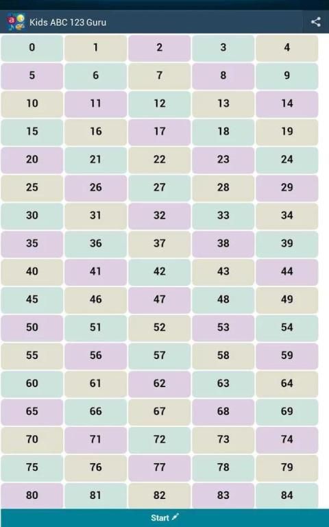 लेखन अभ्यास सुविधा के साथ 0-100 2) नंबर