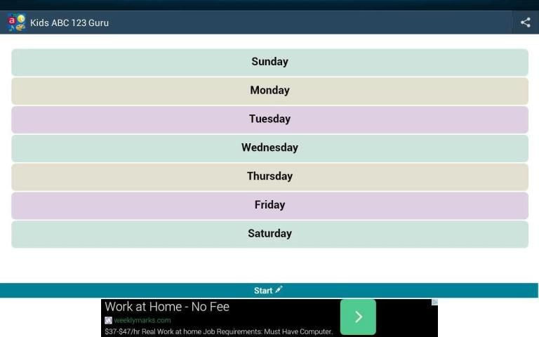 7) सप्ताह के दिनों सिखाओ