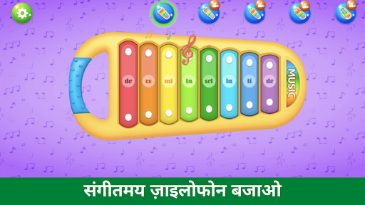 बच्चों और पूर्वस्कूली बच्चों के लिए सुंदर और आसान संगीत गेम - यह ऐप बच्चों को पियानो, गिटार या अन्य संगीत वाद्ययंत्रों का उपयोग करके खुद की धुन बनाने के लिए प्रेरित और प्रोत्साहित करता है। ध्वनियों और धुनों की दुनिया का पता लगाने के लिए शानदार परिचय। यह प्रीस्कूल लर्निंग गेम इंटरनेट के बिना ऑफ़लाइन काम करता है।