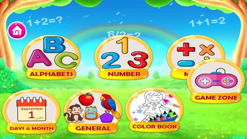 represents with lots of learning categories like; Alphabets, Number system, Mathematics, Days & Months, Colour Books, Generals and Funny Game Zones. This all categories are very effective, colourful graphics and good interaction design and easy to learn for your kids.