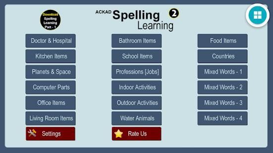 ACKAD Kids Spelling Learning 2 is for Kids to learn spelling as well as typing. More than 450+ spellings to learn with pictures. If kids enter wrong spelling it will display it in red with sound play. We have designed kids keyboard especially so they can understand which fingers to use for typing. While pressing key it also plays sound of key.