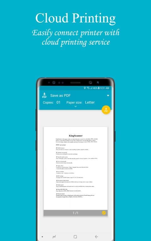 Instantly print out docs in King Scanner with nearby printer by Cloud Printing Service.
