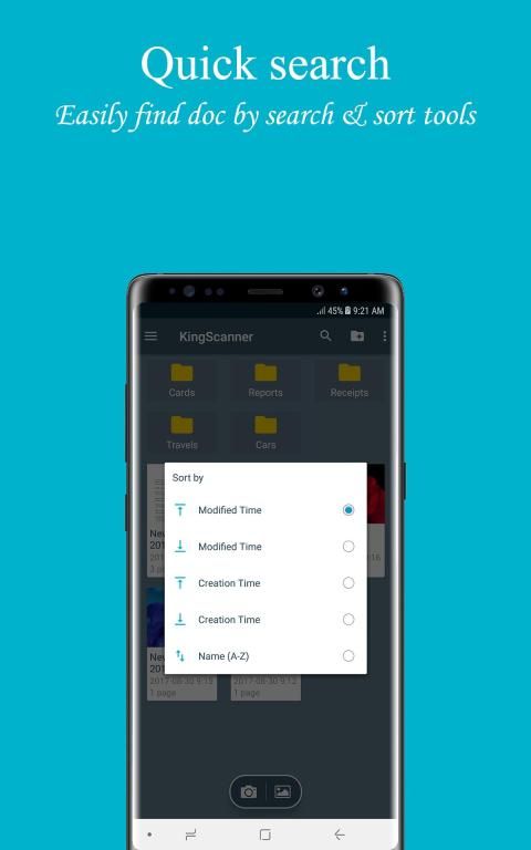 Easy to find document with search tool, or sort by modified time, creation time, name.