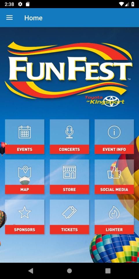 The official app of Kingsport’s Fun Fest, a nine day festival filled with music, children’s activities, sporting events, hot air balloons, fireworks and more. Get the latest festivals updates, check the schedule of events, buy concert tickets or view festival merchandise. Stay up-to-date with events and changes on our Facebook and Twitter. You can even bookmark your favorite Fun Fest events for receive reminders to attend!