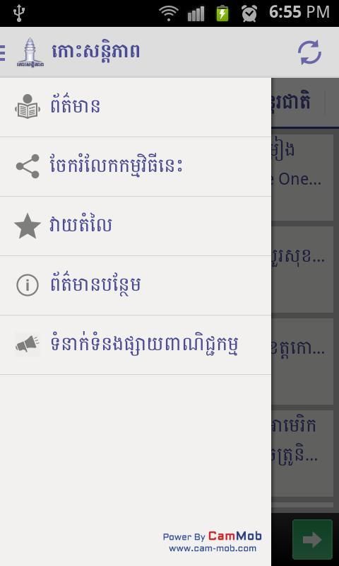 Kohsantepheap डेली समूह KSPG द्वारा संपादित कंबोडिया में प्रमुख समाचार पत्रों में से एक है. इस आवेदन CamMob साथ साझेदारी में विकसित कर रहा है.