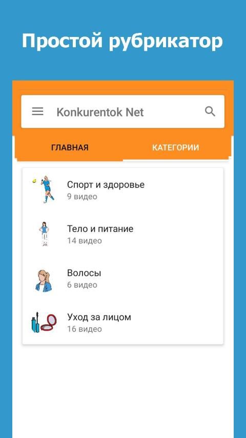 Konkurentok Net - это приложение собравшее отобранный видеоконтент с полезной информацией для женщин. Здесь вы найдете короткие видео от разных экспертов по темам связанных с красотой, здоровьем и уходом за собой в домашних условиях. А также советы о том как похудеть, какую косметику подобрать и как сделать правильный макияж!