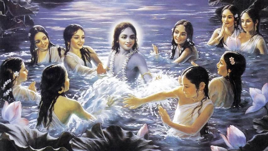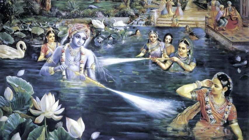 उस पर सुंदर पानी लहर प्रभाव के साथ राधा कृष्ण होली छवियों का संग्रह।