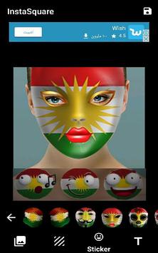 Kurdish Flag App with Emoji to create profile photos with Kurdistan Flag overlaid over your Photos, it have Sticker Photo Editor to create amazing photos, stickers, backgrounds, text with layout and frames to make perfect selfie or for Instagram and Facebook