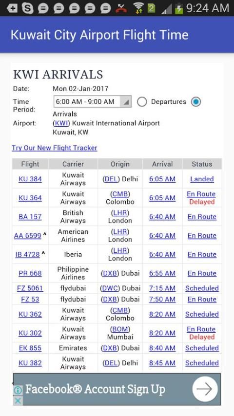 Following is the introduction of a wonderful App. 20,000+ users downloaded Kuwait City Airport Flight Time latest version on 9Apps for free every week! The app is superior that can be used with any of the mobile type. This hot app was released on 2017-01-08. You can quickly get it from 9Apps!