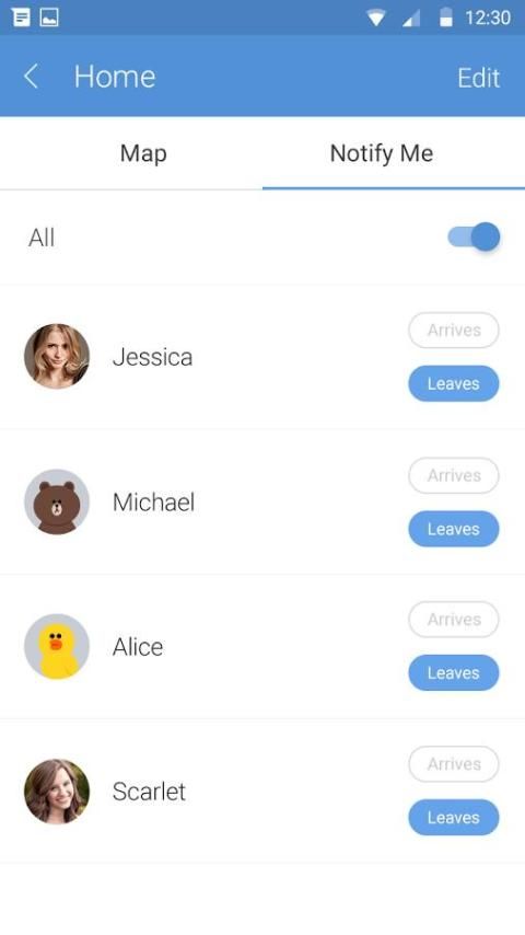 LINE HERE's intelligent place notifications let you know exactly when any member arrives at or leaves a particular place.