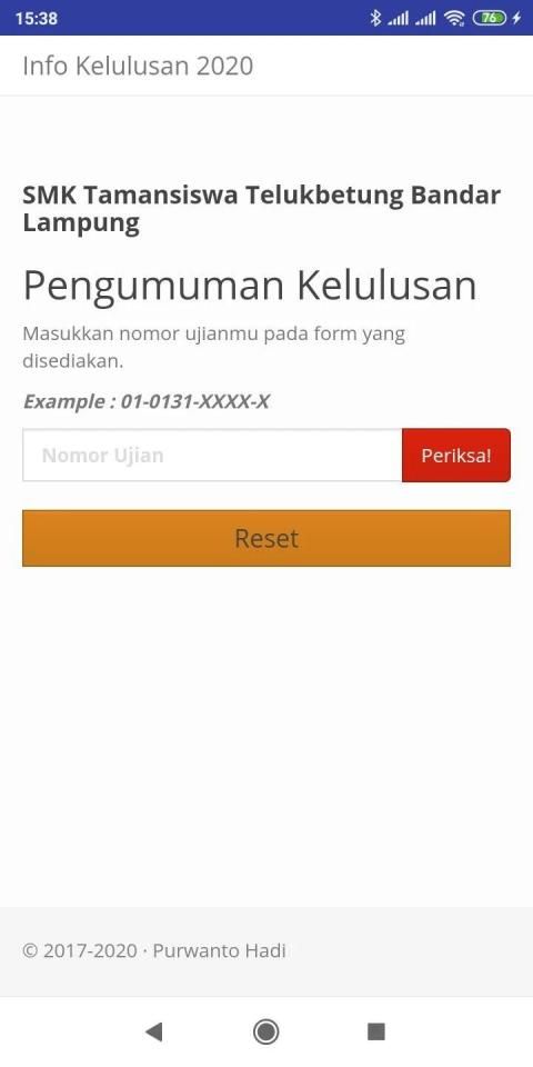 Aplikasi Info Kelulusan khusus siswa SMK Tamansiswa Telukbetung Bandar Lampung