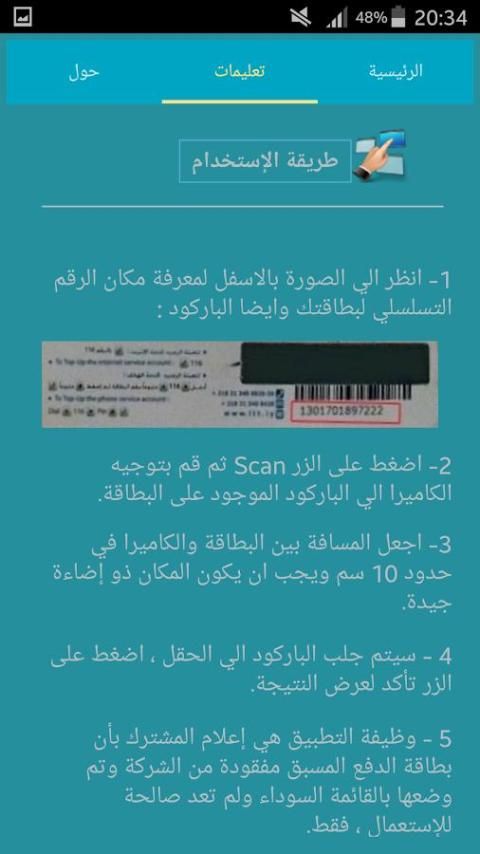 , आवेदन किसी भी बयान या गोपनीयता के उल्लंघन का उपयोग नहीं करता की सुरक्षा हम कंपनी के ग्राहकों को सलाह देते हैं और सभी एजेंटों सावधानी जब श्रेणी 5, क्रय 10,100 दिनार और व्यायाम पहले कार्ड की जांच नहीं चोरी और गैर सक्रिय कार्ड कंपनी की सूची में सदस्य बनने के लिए करना चाहिए।