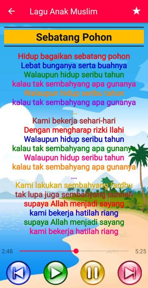 Aplikasi +80 Lagu Anak Muslim & Sholawat Nabi Terbaik (Full Offline), Lengkap Audio MP3 dan Liriknya. Berisi kumpulan judul lagu anak islami dan shalawat pilihan dari berbagai tema, cocok bagi para Orang Tua yang ingin memfasilitasi media hiburan sekaligus pendidikan Agama bagi sang buah hati. Cocok untuk tingkat Taman Kanak Kanak (TK), Pendidikan Usia Dini (PAUD), hingga tingkat Sekolah Dasar (SD).