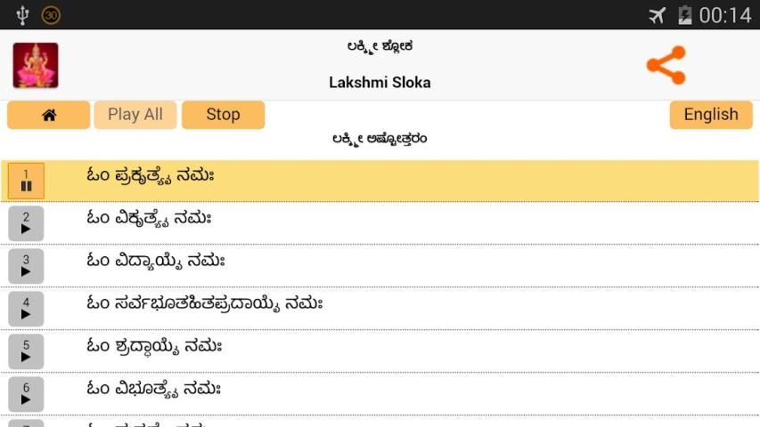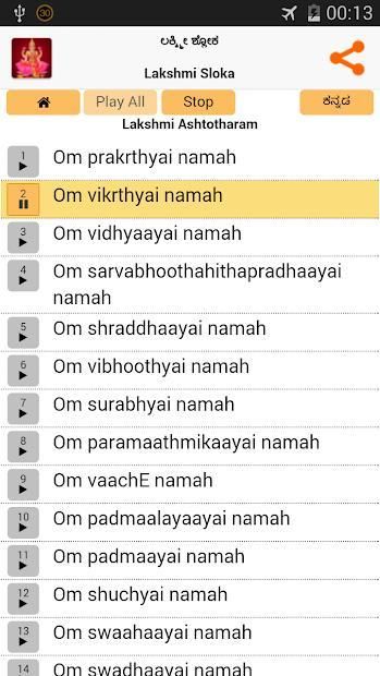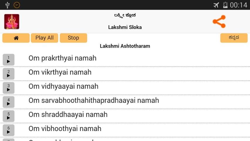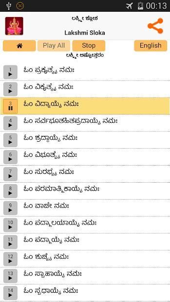 This application is in devotion towards Lakshmi. It has the below slokas and mantras in Kannada and English with audio. The audio helps to learn the mantra pronunciation.