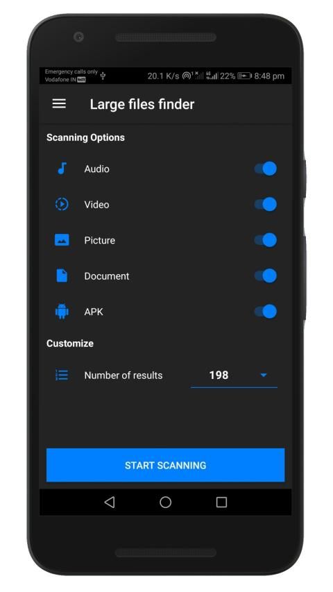 ✔ Exclude images,videos,pictures,documents or apk files while scanning!