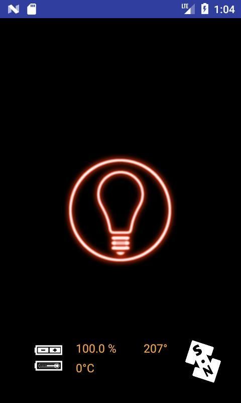 अद्वितीय और आसान एलईडी टॉर्च का उपयोग करें। मशाल भी एक खाली स्क्रीन के साथ काम करता है। यह एक कंपास है और वर्तमान चार्ज स्तर और बैटरी तापमान प्रदर्शित करता है।